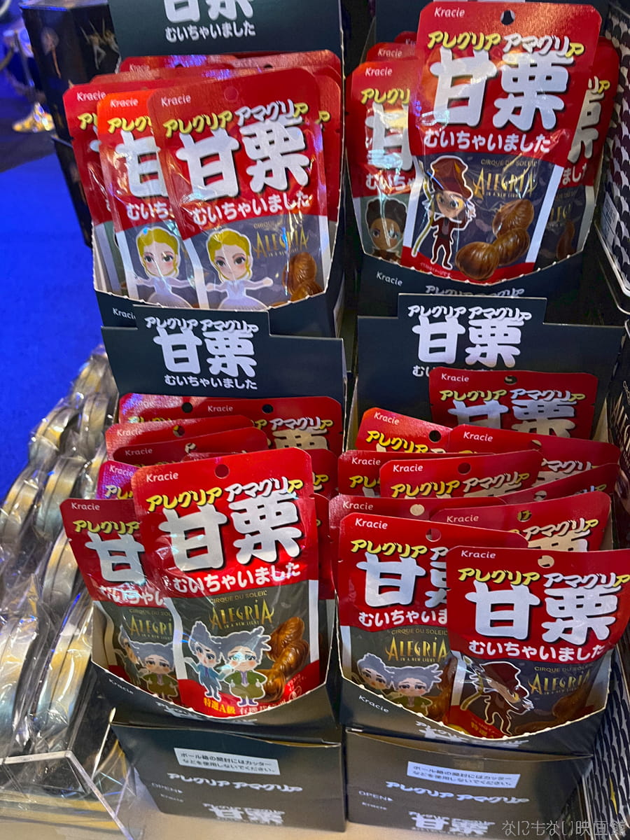 売店の商品。やはりアレグリアと言えば甘栗ですよね。